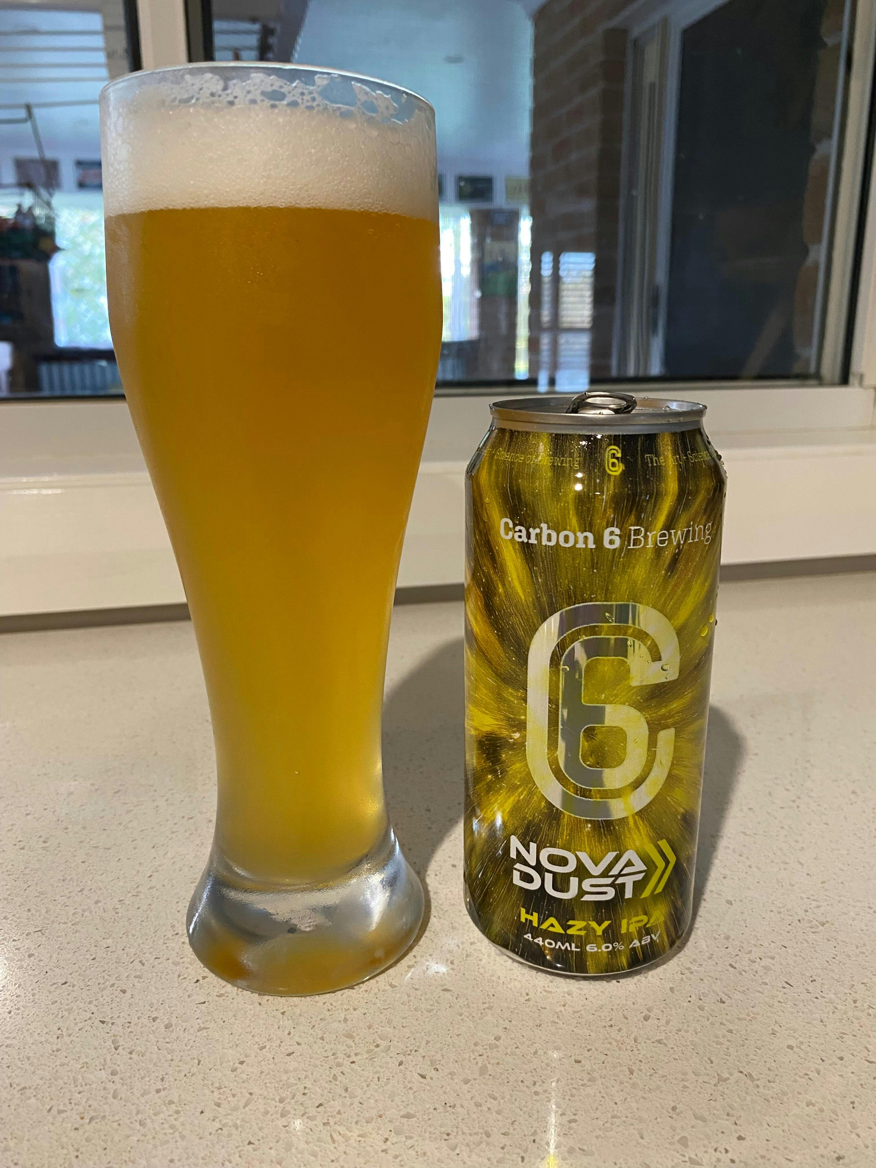 Nova Dust is our exciting new Hazy IPA! It's full of flavours bursting with with that signature Carbon 6 quality, haze for daze and spinning along in a handfull 440ml can.
