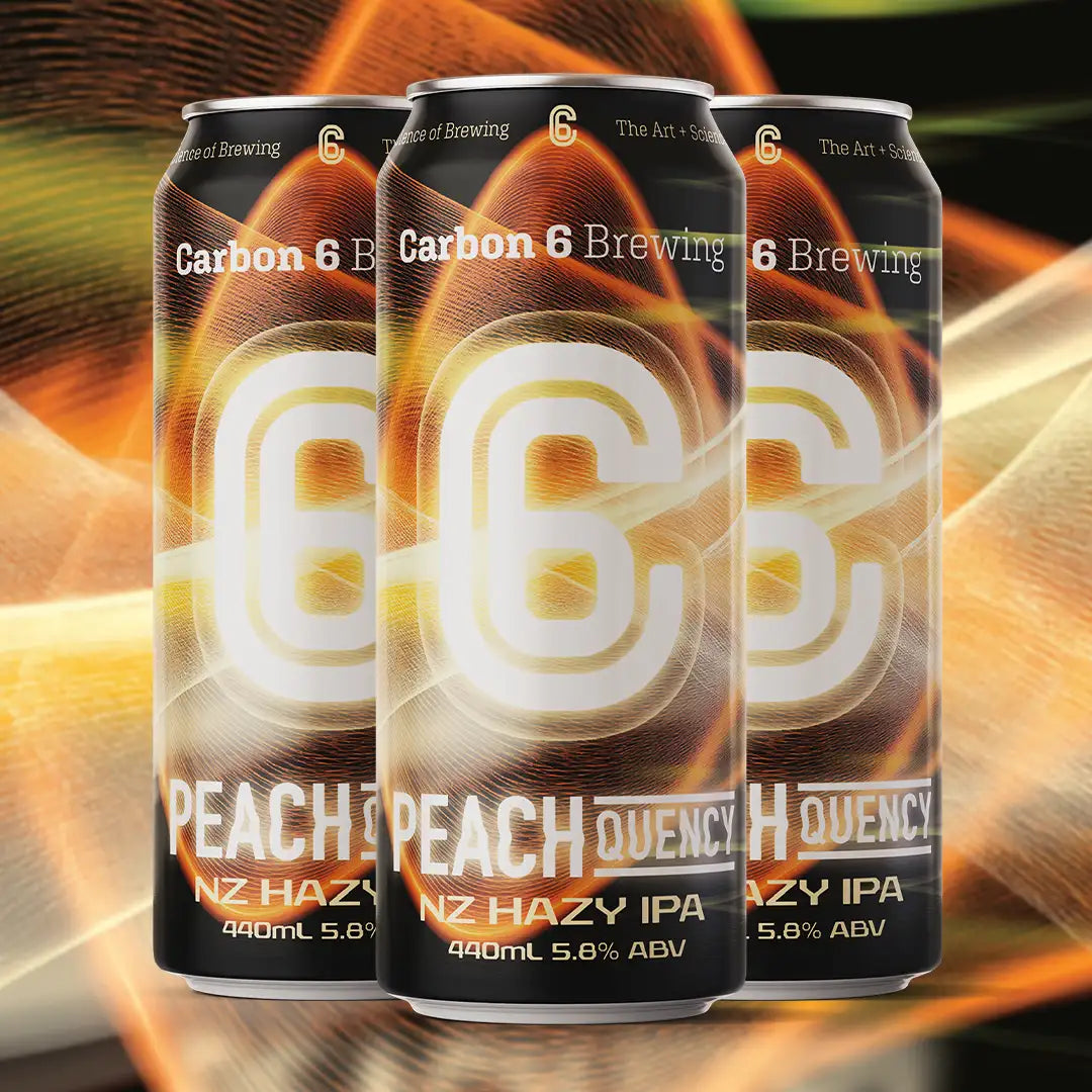 Peachquency is our exciting new Hazy NZ IPA! It's full of flavours bursting with that signature Carbon 6 quality, haze for daze and spinning along in a handfull 440ml can!