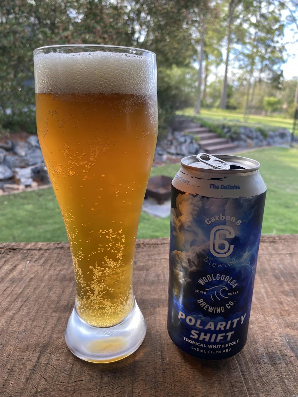 Polarity Shift is our second collaboration this year and is a Tropical White Stout! It's full of flavours that will twist your mind with that signature Carbon 6 quality.